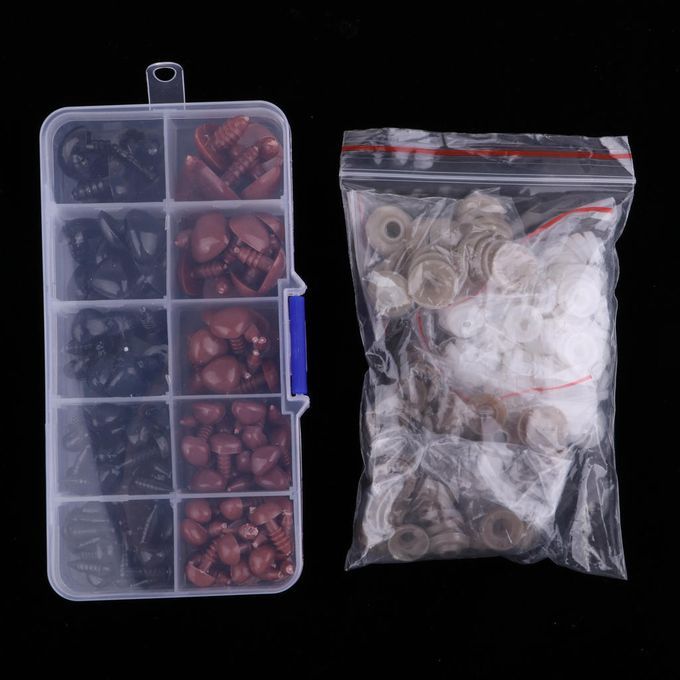 Black & Brown 8-16mm 130 Pieces Plastic Safety Screw Noses with Washer Buckle