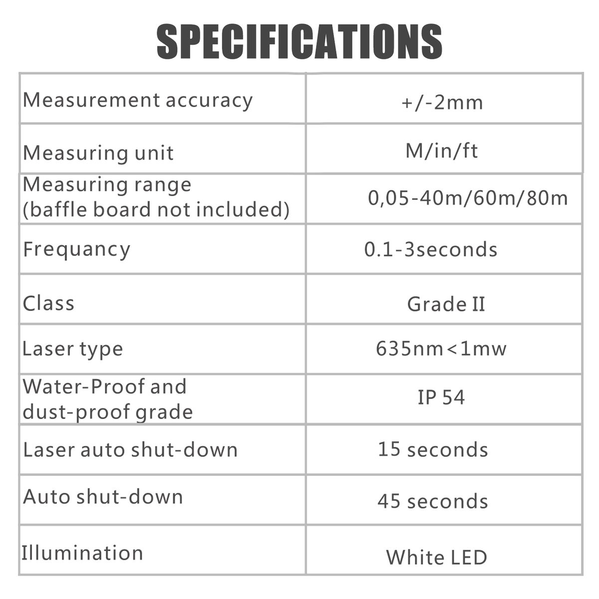 Description:Our product can measure up to 131Ft and is suitable for everyday home use as well as measuring large commercial areas such as buildings, factories, and warehousing. Simply with one click, you can switch between distance, volume, area measurement, Pythagorean measurement, and continuous measurement. You can also freely switch the units in Ft/In/M.