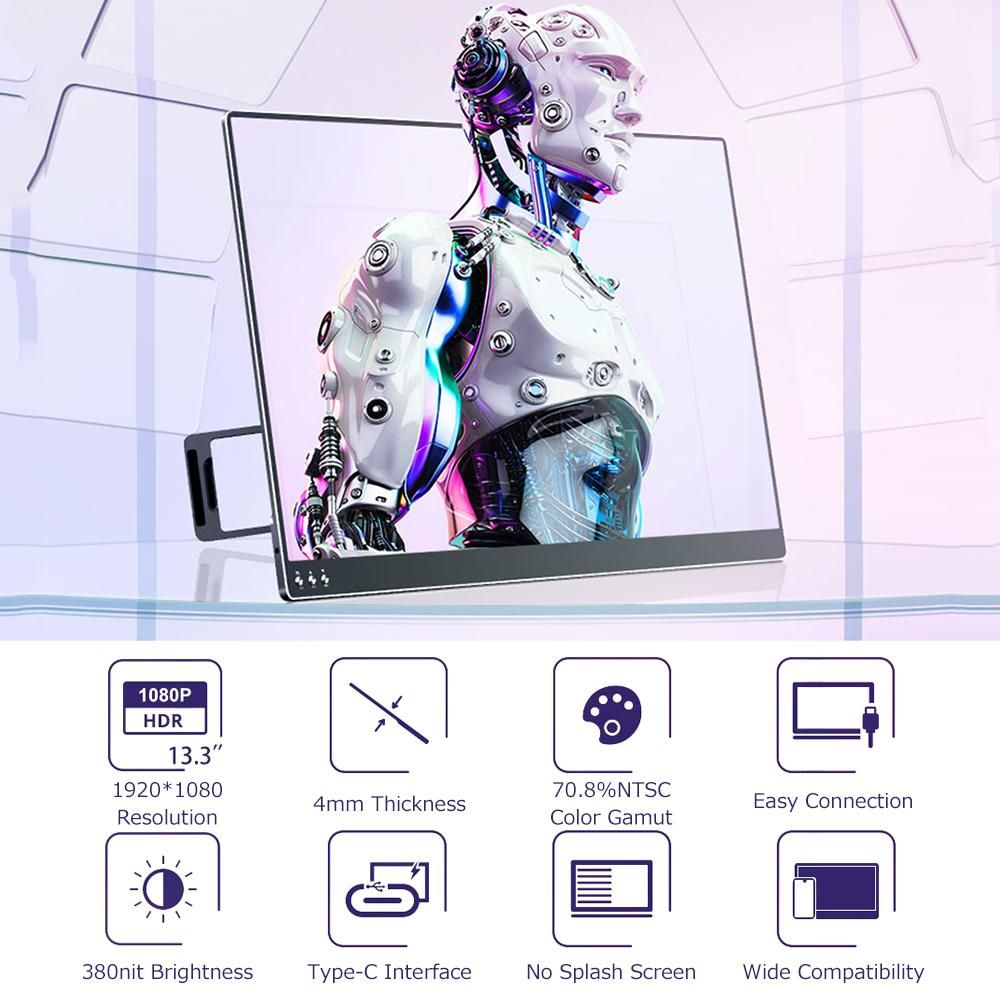 Buy 13.3 inch Portable Monitor QLED Screen 1920*1080 Resolution with Integrated Foldable Bracket Wide Compatibility Black US Plug in Nigeria