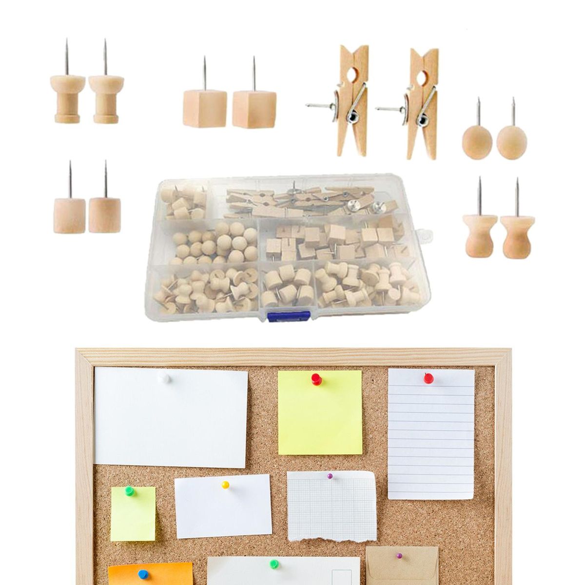 Thumbtacks;Wooden Push Pin set Thumbtacks Clips Pushpins;wood Thumb Tacks Kit Head Pins Kit Decorative;Cork Board Bulletin Boards Map Marking Artworks;Tacks Notes Photos School Office DIY Accessories;Home Wall Decoration Supplies Art Crafts Projects