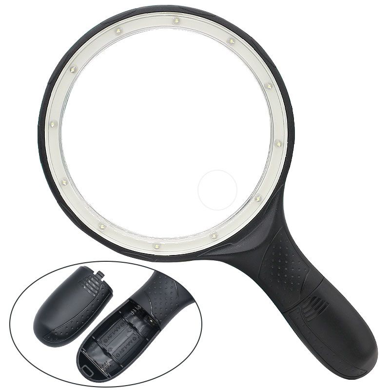 1.Gla lens provides clear view field 2.Anti-skid and ergonomic handle make it used more comfortably 3.Used 2 AA batteries as power supply 4.Can be used to read books, newspapers, menus etc.