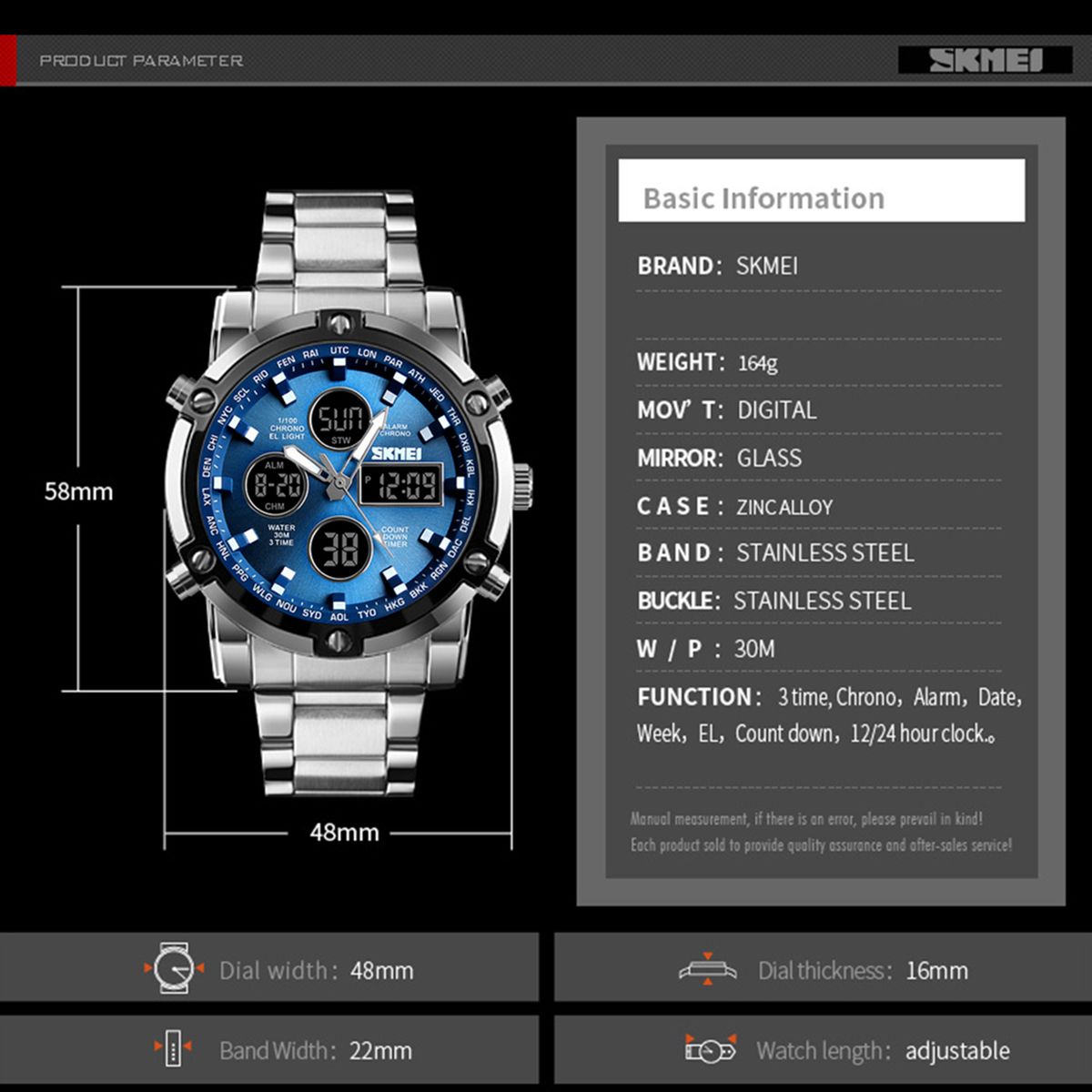 - Color: silver case blue dial/silver case silver dial/silver case black dial/black case black dial(optional)