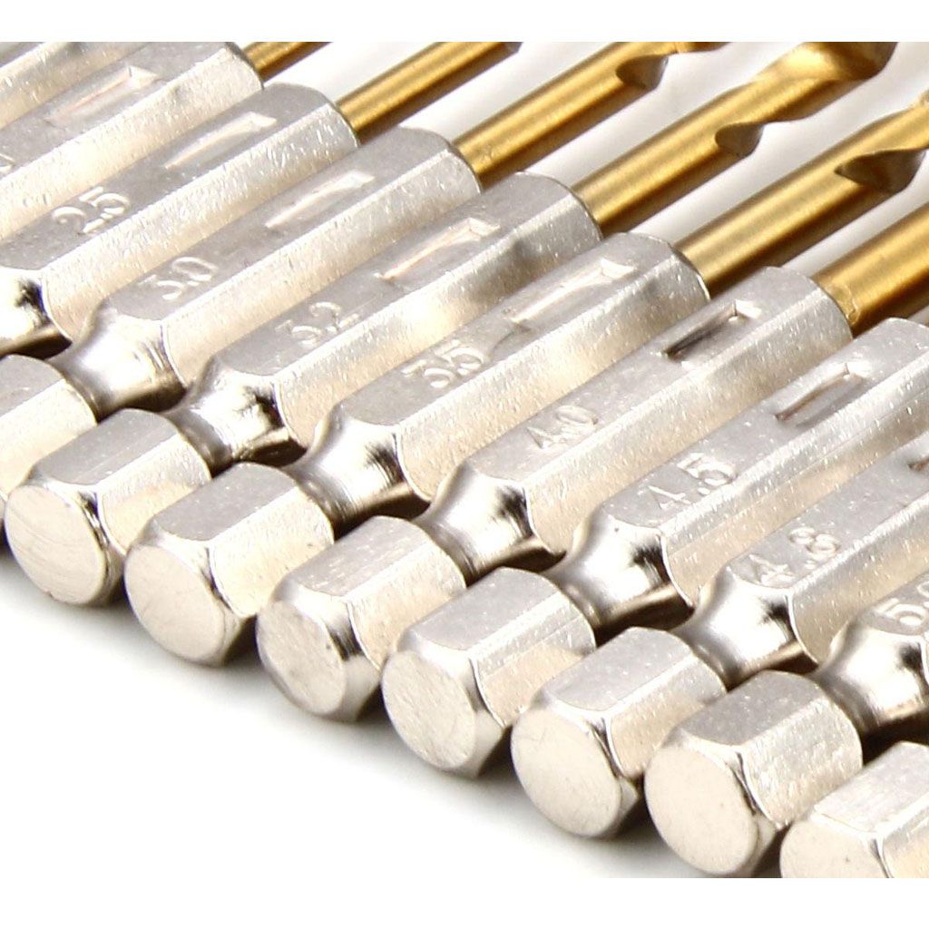 Drill bit made with high speed steel coated with titanium nitrate for longer life.