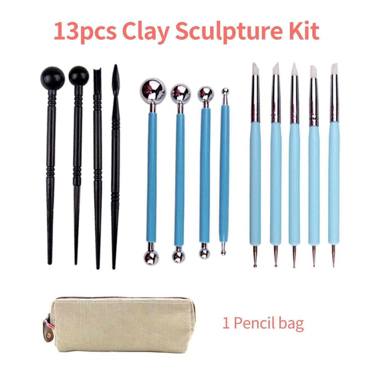 Buy 13pcs Clay Sculpture Kit with Pencil Bag Acrylic Rod Indentation Pen Clay beginner's set for Fondant Cakes/DIY Ceramic Clay/Nails Art in Nigeria