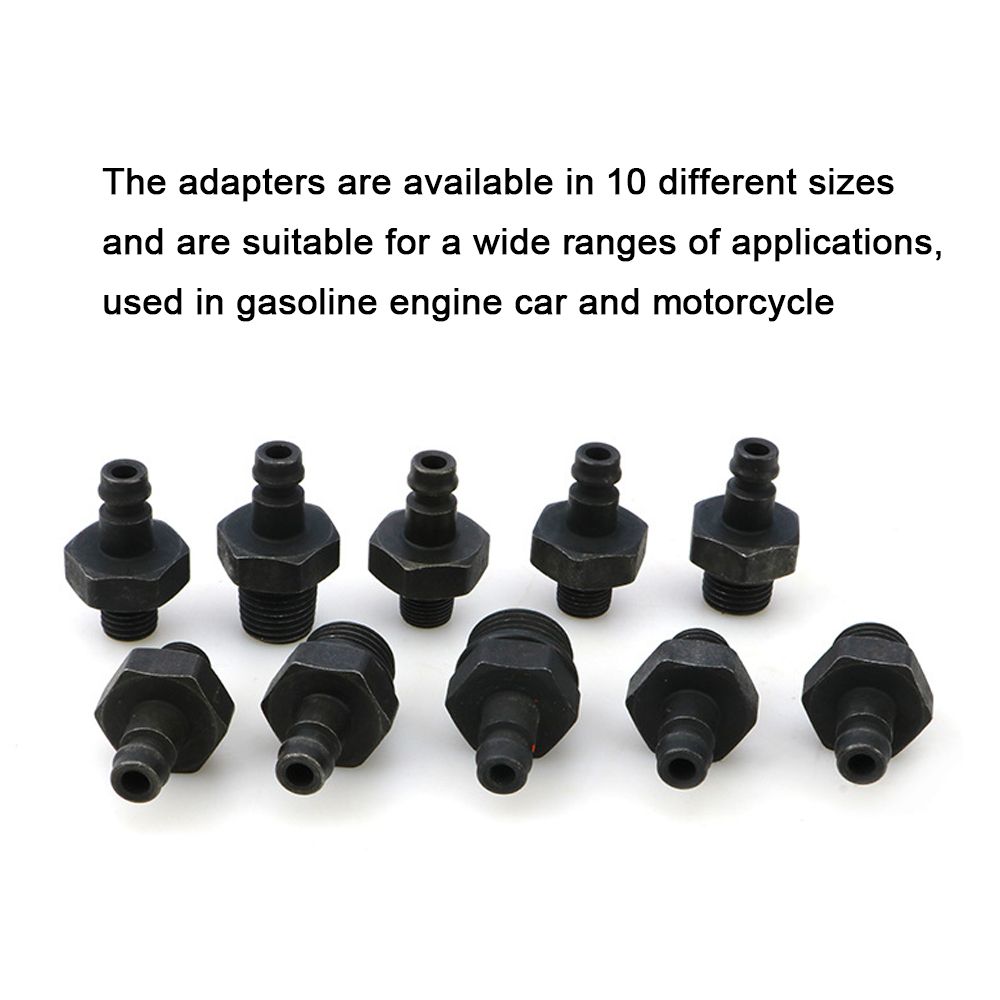 The adapters are available in 10 different sizes and are suitable for a wide ranges of applications, used in gasoline engine car and motorcycle.