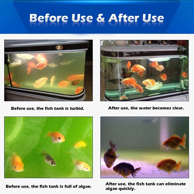 Please choose the suitable lamp according to the size of your fish tank and filter-tank. 3-4 times for a week and 10 minutes-1 hour each time.