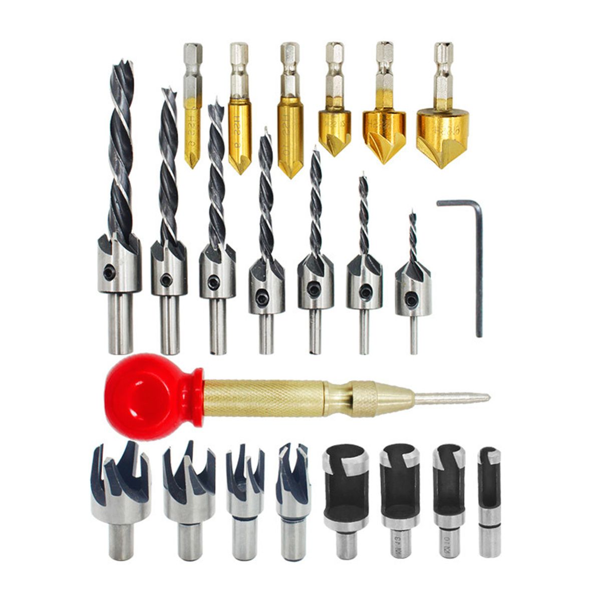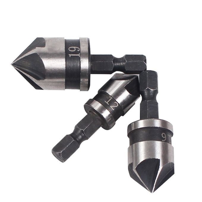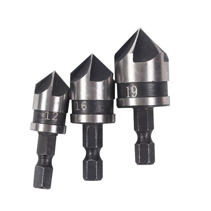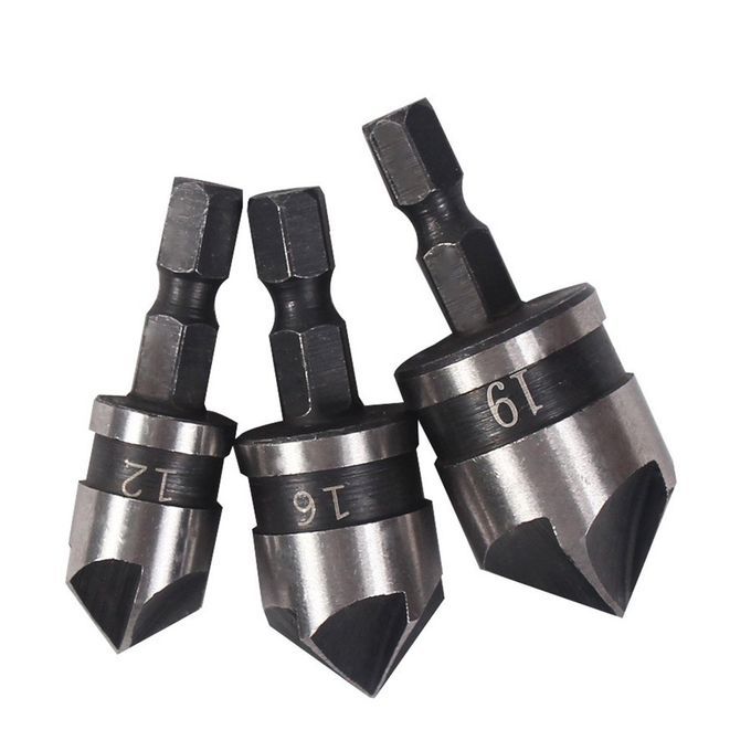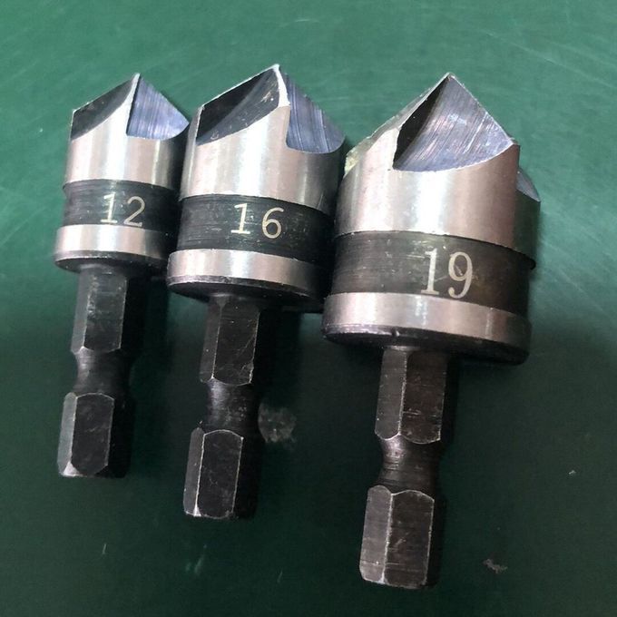 1/4" 12mm 16mm 19mm Ountersink Power Drill Bit Bore Set For Wood -Silver