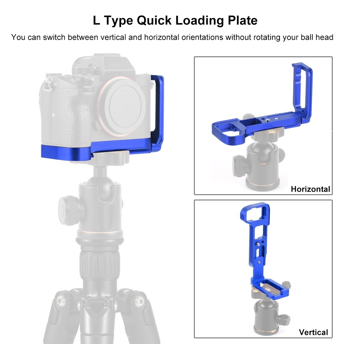 1/4 inch Vertical Shoot Quick Release L Plate Bracket Base Holder for Sony A9 (ILCE-9) / A7 III/ A7R III(Blue)