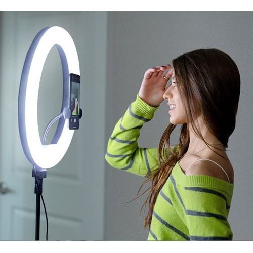 14” led ring light comes with tripod stand and a phone/camera holder.