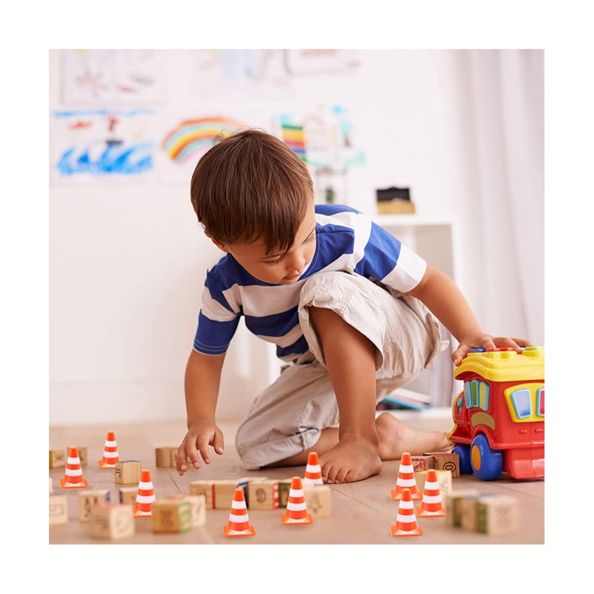 [Quantity & Size]You will receive 14 pieces model traffic cones, each is 3.5 x 2.5cm, small and cute, painted well, bright color, easy to arouse kids interest.