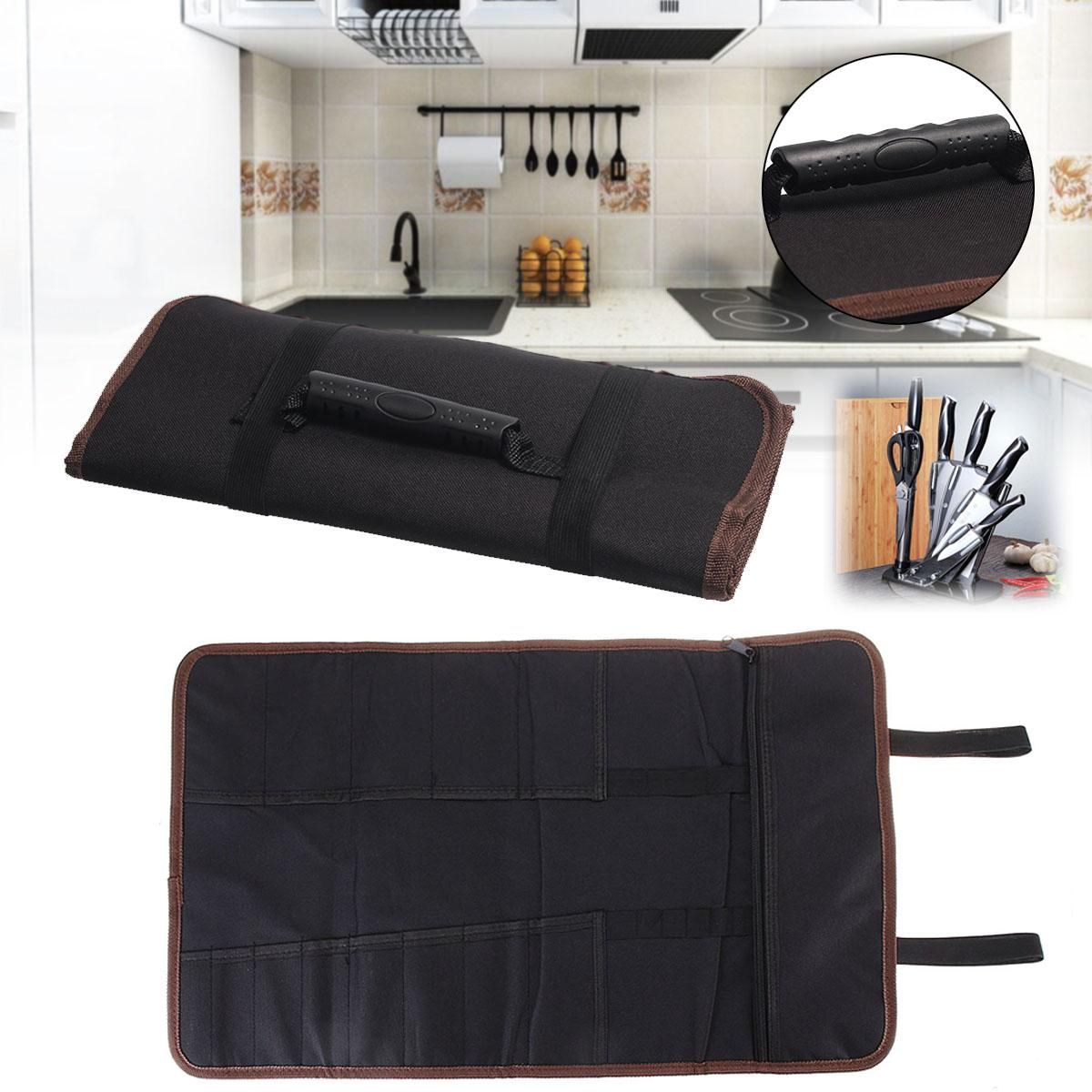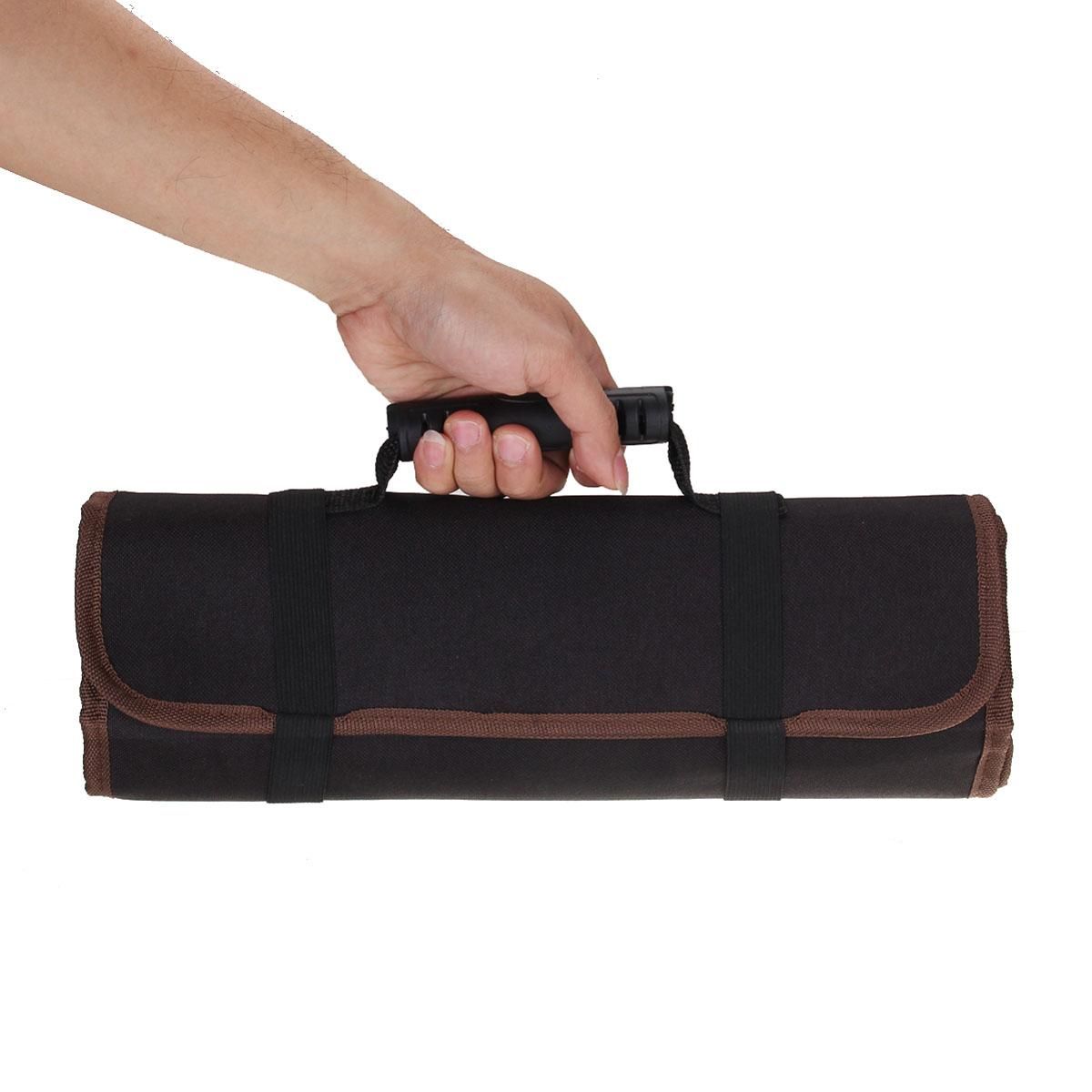 14 Pockets Chef Kn-ife Bag Roll Bag Carry Case Bag Kitchen Portable Storage Color: Brown Material: Knitted fabric Folding size: 35cm x 15cm Unfolding size: 58cm x 35.5cm