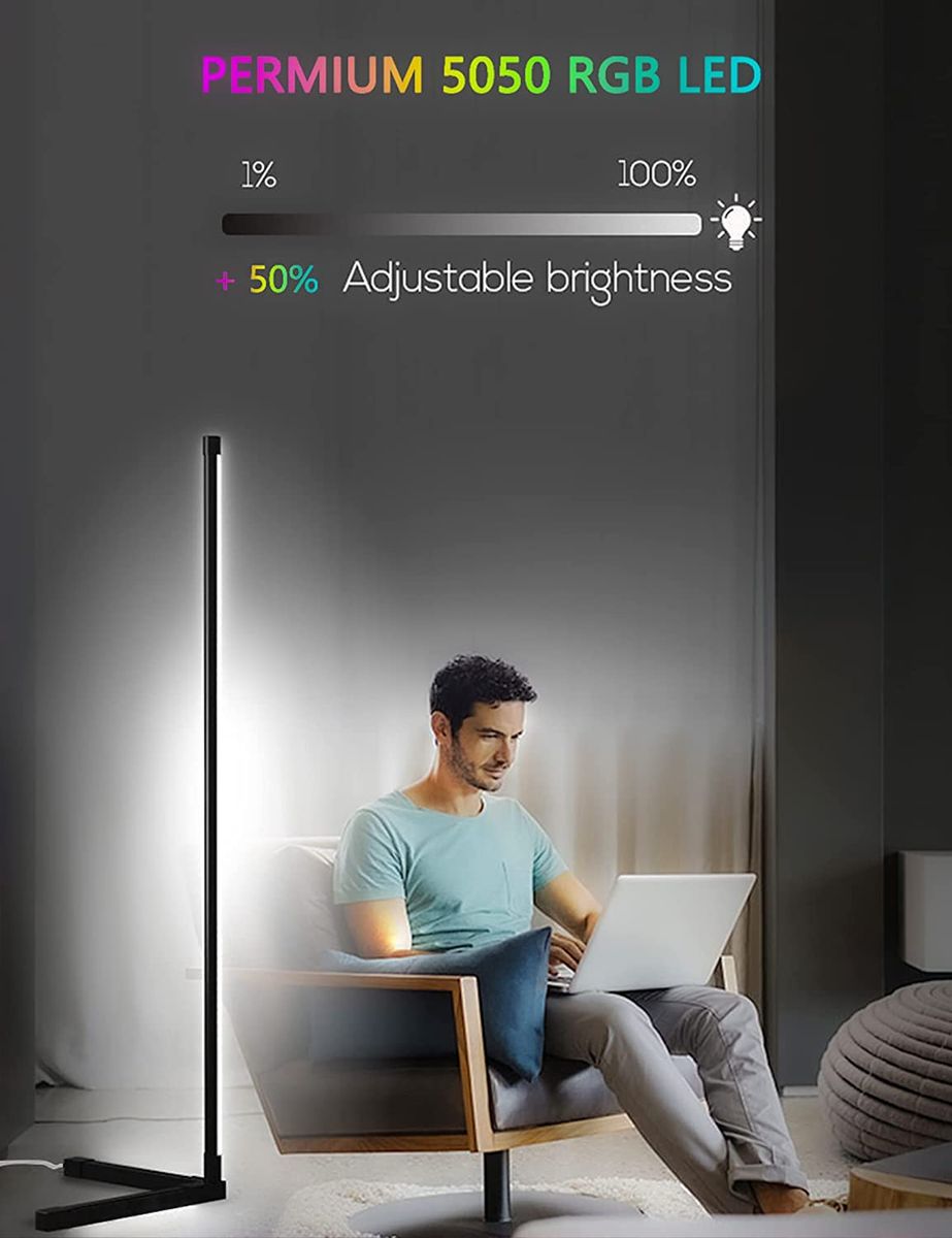 140cm Tall RGB Changing Color LED Corner Floor Lamp, With App Remote Control