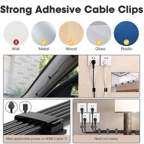 [20 Black Cable Clips] The Clip is made from eco-friendly Polyamide66 material, nontoxic, extra strong, and dystectic.Works on all clean surfaces like desks, walls, baseboards, cabinets, wood, ceramics, etc.