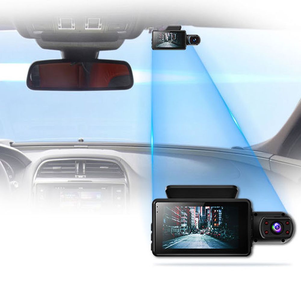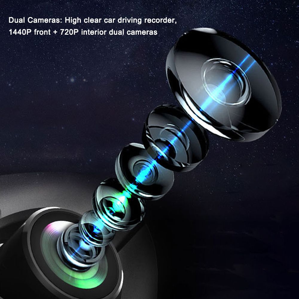 Features:【Dual Cameras】 High clear car driving recorder, 1440P front + 720P interior dual cameras, the 3.5-inch IPS screen displays real-time images for you, making driving safer.