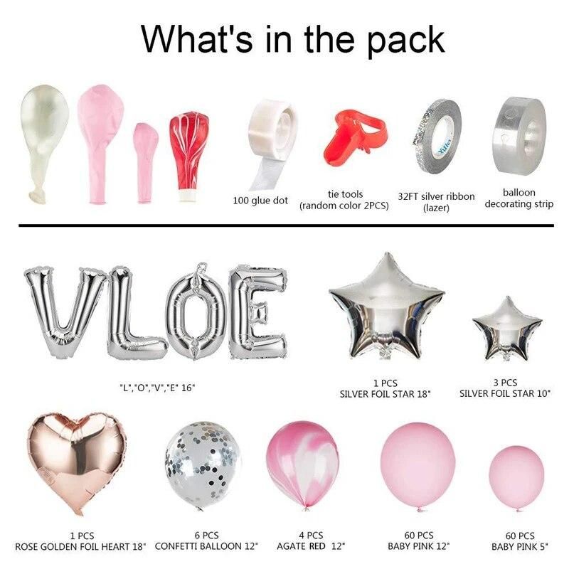 Buy 144pcs Foil Ballon Decoration Wedding Baby Shower Party Supplies Pink White Balloon Arch Garland Set LOVE Star Heart Shaped in Nigeria