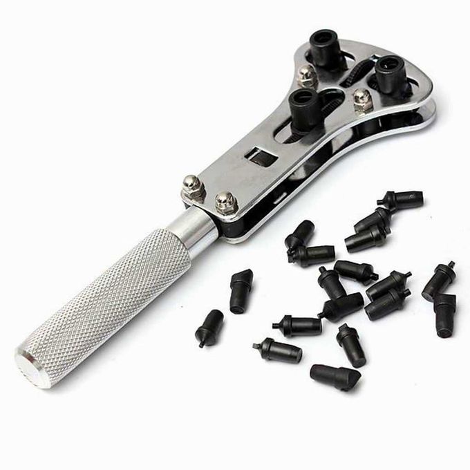 1 Piece Case Opener18 Pieces Case Opener Pins1 Piece Oiler/Oil Pen1 Piece Stainless Steel Tweezers1 Piece Spring Bar Tool2 Piece Spring Bar Tool Spare Tips108 Pieces Watch Strap Spring pins1 Piece Link Remover3 Piece Link Remover Spare Pins1 PieceWatch Case Holder1 Piece Watch back pry opener3 Pieces Precision Anti-magnetic Screwdrivers (1.2mm, 1.4mm, 1.6mm)3 Pieces Pin Punches (0.8mm, 0.9mm, 1.0mm)1 Pieces Carrying Case