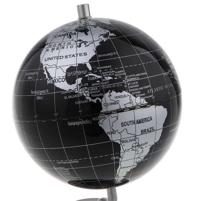 14cm Alloy Globe World Map Home Desk Decoration Kids Gift - Black Silver