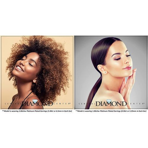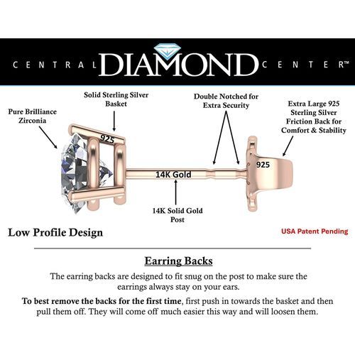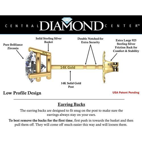 - Platinum plated sterling silver stud earrings embellished with round pure brilliance Zirconia. Set with Three prongs, Sturdy posts ensure earrings are secure A timeless and classic piece. Each Pure Brilliance Zirconia is Laser Engraved as a seal of authenticity it guarantees the highest quality diamond simulant in the world. These silver pieces are built for life. Metal plating for a more lustrous appearance. central diamond center makes 14k earrings with 14k gold post earrings.