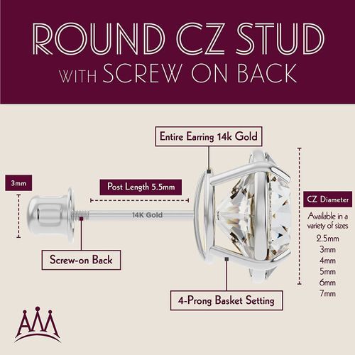 Buy 14k White Gold Solitaire Cubic Zirconia CZ Stud Earrings in Nigeria