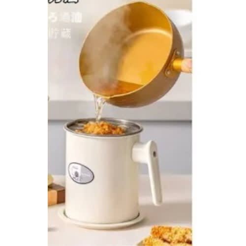 This is 1.4L Oil Pot with Oil Strainer, It is a stainless Steel and recommended for every kitchen as all unused oil for frying can be filter away and the oil store with for future use. It comes with a filter with Lid. You can store Pig Oil ,Scum Storage Tank, Tempura Oil, and all unused oil during frying or buns, meat, egg, yam etc, The can is reusable and hs a large Capacity of 1.4L. The storage can pot is Leak Proof. The lid is closes well and does not fall off. The lid is well tightened. This cup is made of plastic and stainless. The sieve filter all food particles and ensure that only oil are stored in the can. It is handy and helps you avoid unnecessary waste.