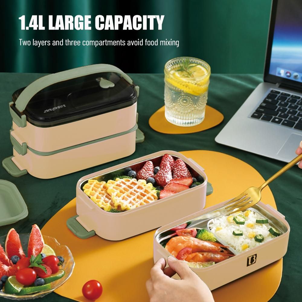 Buy 1.4L Detachable Lunch Box 304 Stainless Steel Double Layer 3 Compartments Portable Bento Box No Leakage Large Capacity for Adults Kids Camping Office Pink in Nigeria