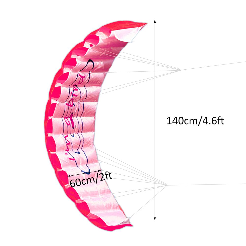 4.6 feet tall by 2 feet wide, comes with 2 handles with 30m flying line.