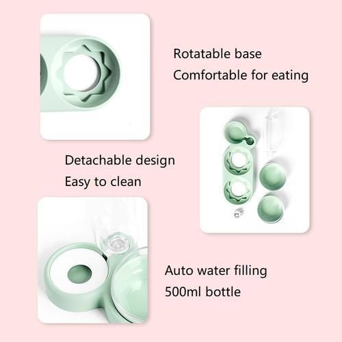 15° Cat Bowl And Automatic Water Feeder Small Dog Food Container Depart Dry And Wet Food Or For Two Pets, 3 In 1-Cat Feeding & Watering Supplies(Green)