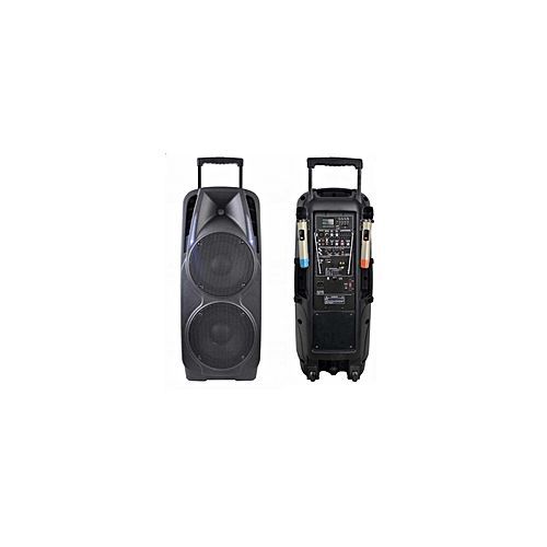 Professional Portable 15" Trolley Speaker PA System With Dual Wireless Microphones & Rechargeable Battery now comes with a Bluetooth connection to play recorded sounds and performance by just pairing your Bluetooth enhanced gadget to your all in one Portable P.A System with losing any important features like Bluetooth Mode, USB/SD Card slot and others.