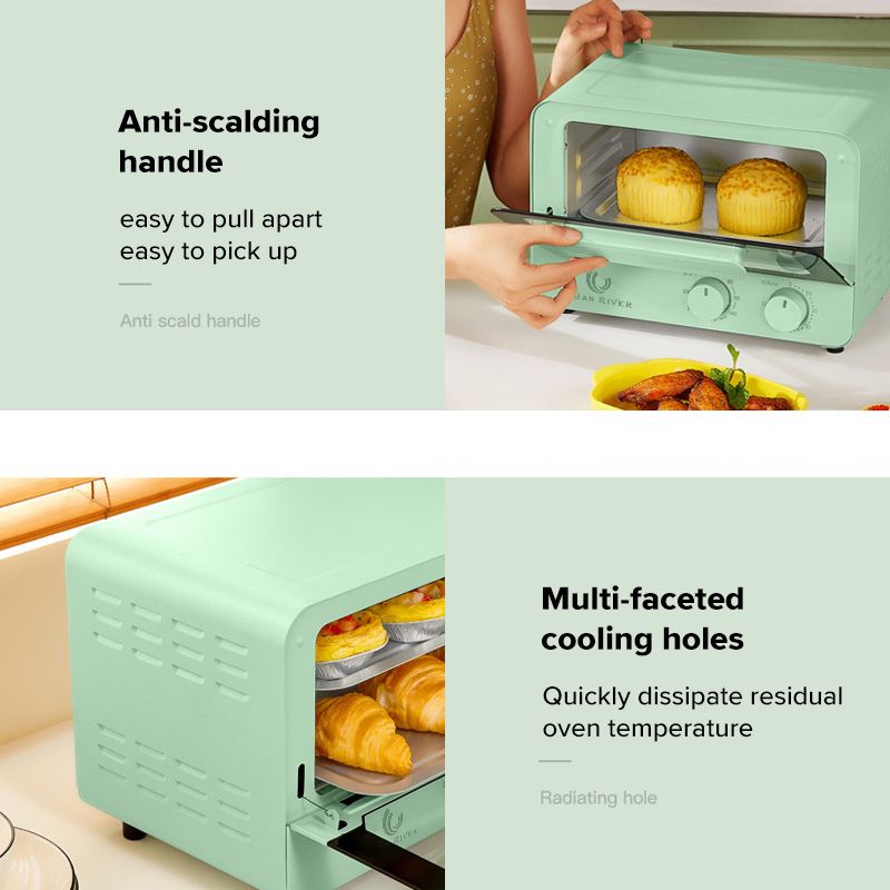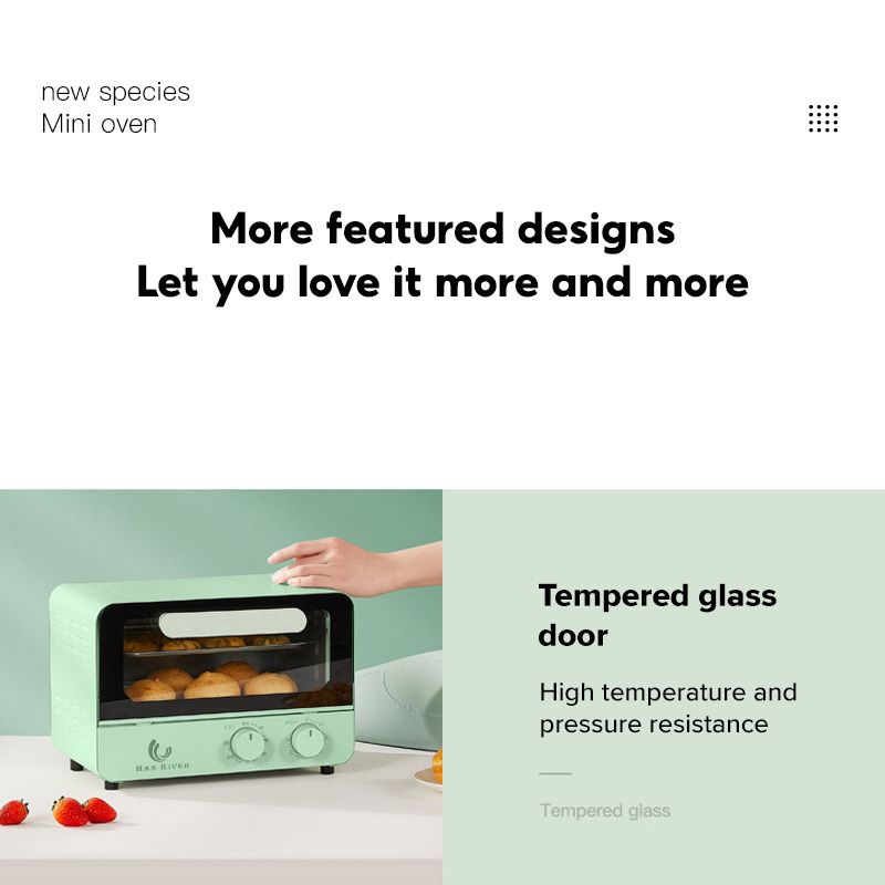 The HAN RIVER electric oven has a capacity of up to 12 liters, allowing you to fry your food with less oil and produce a delicious meal that cooks evenly. No preheating required, and with the new compact design, you can still cook large amounts of food.