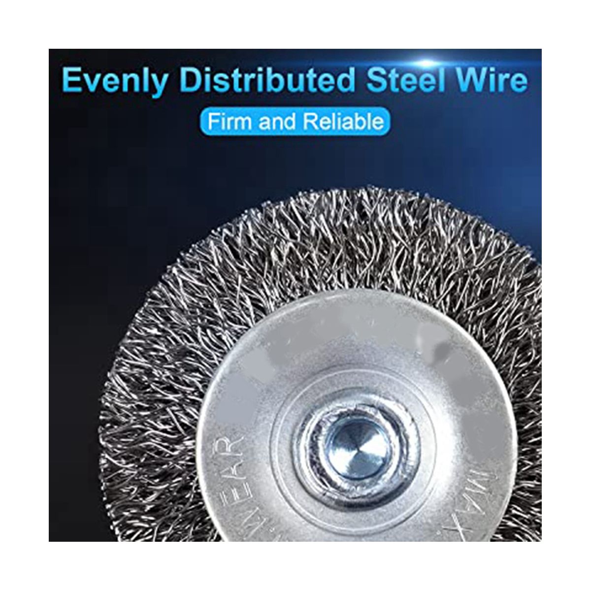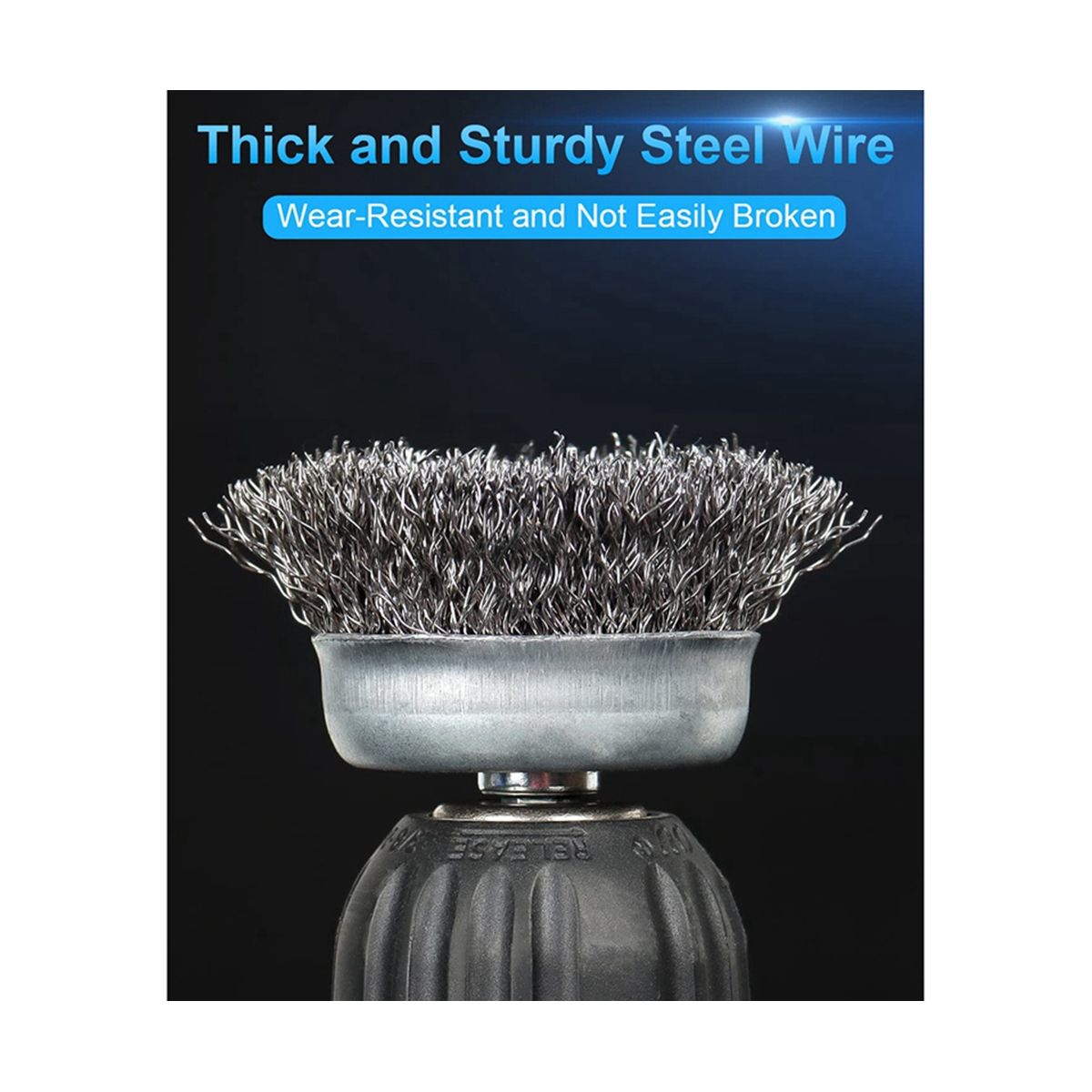 15-Pack Wire Brush Set: This set includes 5 pcs carbon steel cup brushes, 5 pcs wheel brushes, 5 pcs brushes with hex handles.