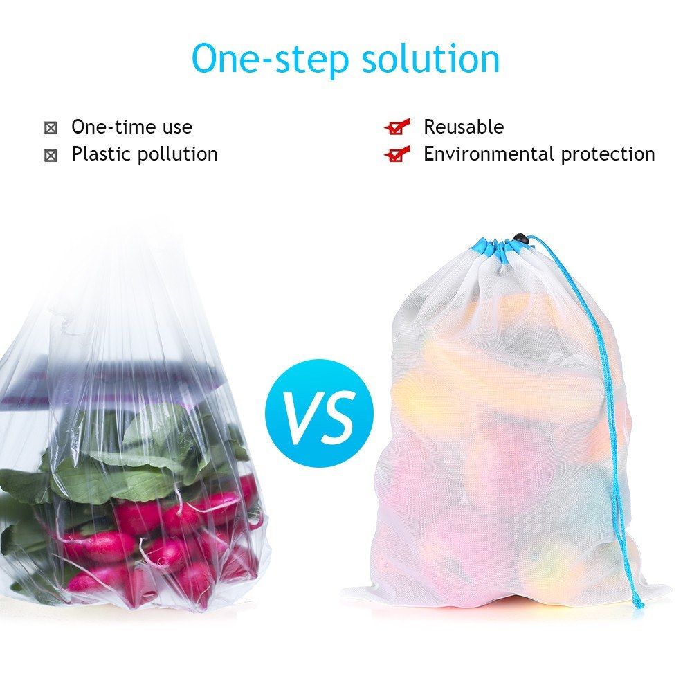 This high quality produce bag is versatile. 15 pcs in 3 sizes to meet your various demands in daily life. Easy to open and close with drawstring toggle closure. One-step solution of being plastic free and helping the environment!