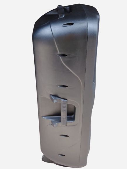 The 12" speaker and tweeter horn is housed in a cabinet with a rugged design to withstand heavy use. The housing design includes a handle on the side for when you want to lay it on its side for a lower profile during stage use, a integrated 35mm speaker stand mount and you can also stack multiple on top of each other to create a sound tower! The heavy duty wheels and telescoping handle make portability easy to move and set up for parties, BBQs, and any outdoor/indoor event.