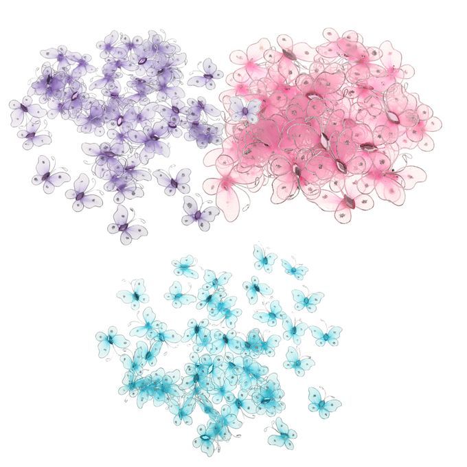 50 Pieces x Purple Stocking butterflies 50 Pieces x Blue Stocking butterflies 50 Pieces x Pink Stocking butterflies