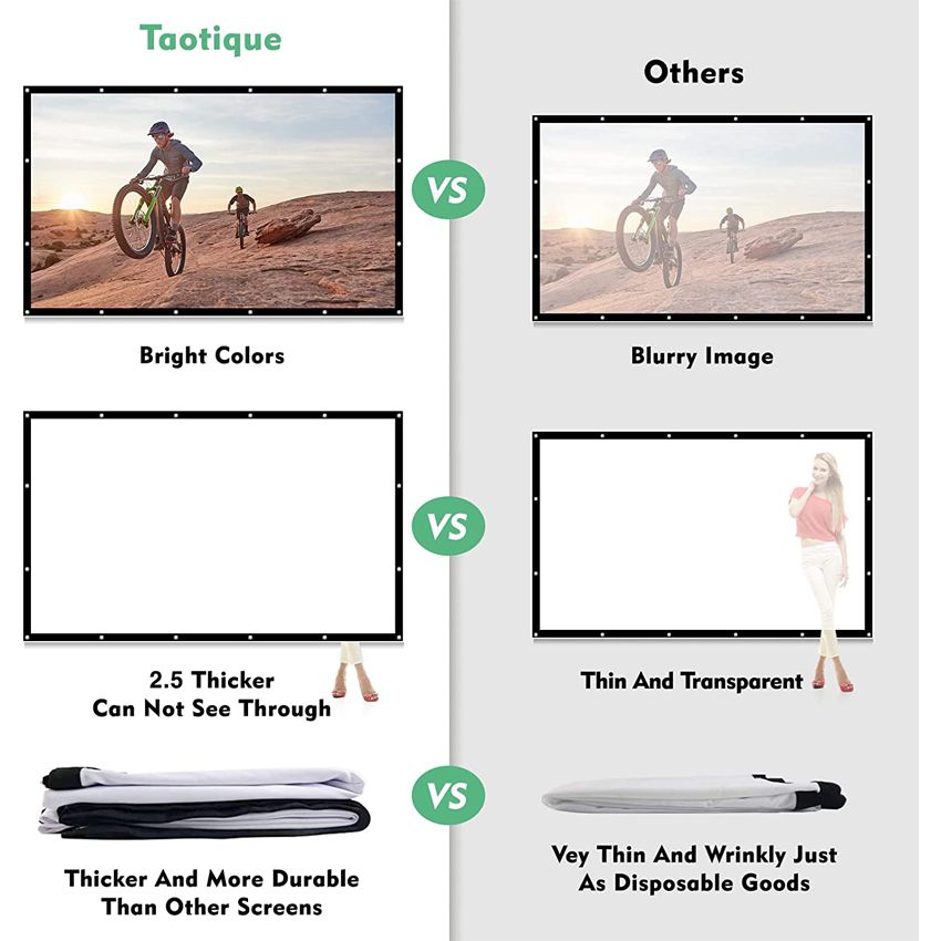 Wrinkle Resistant & Super Absorbent Material - Made of natural polyester fabric, the projection is clearer and brighter than most other projection screens, the projection screen is thickened and smooth, and will not wrinkle when folded/crushed.
