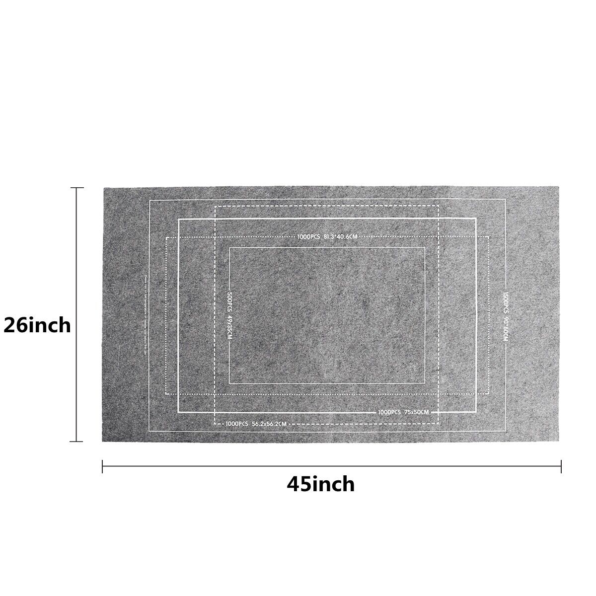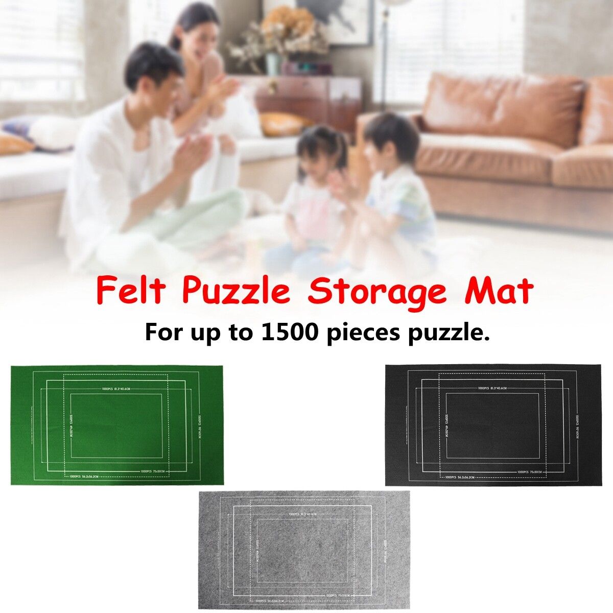 Felt Puzzle Storage MatFeatures:The of mat helps for easy sorting and contrast without confusion.Specification::Grey,Green,BlackMaterial: FeltSize: about 26x45 inch[Conversion: 1cm=0.3937 inch, 1inch=2.54 cm]For up to 1500 pieces puzzle.Package Included:1*Felt Mat1*packing bag(Warm tips:Puzzles Not included.)Note:-Due to different producing batches, product details might be a little different. If you minding the difference, please buy it carefully.-Please allow 1-3CM differs due to manual measurement.-Due to the different display and different light, the picture may not reflect the actual of the item. Thanks for your understanding.