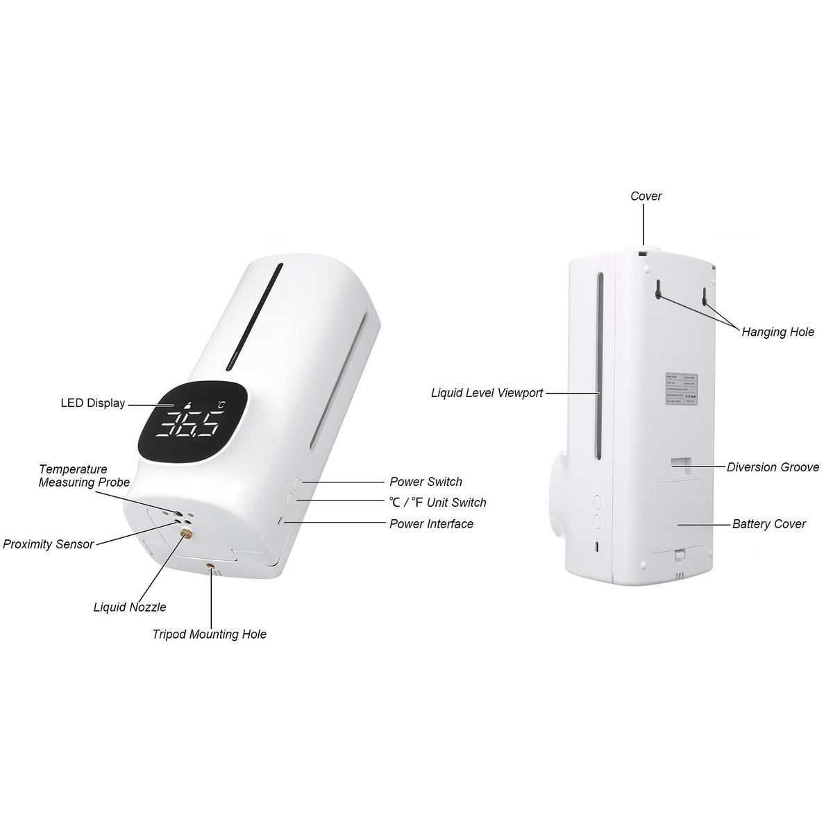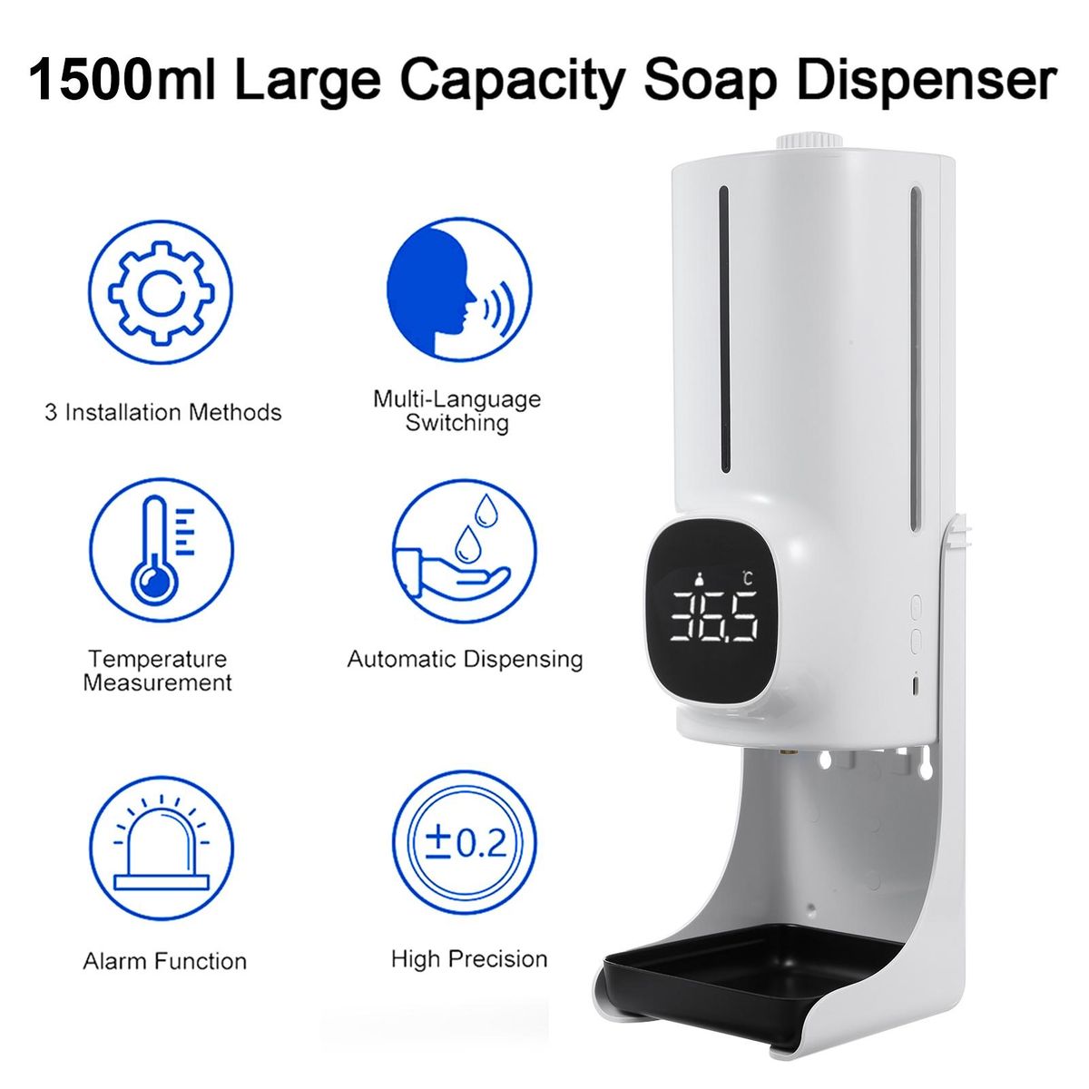 Buy 1500ml Wall Mounted Automatic Soap Dispenser Hand Sanitizer Dispenser Non-contact Infrared Thermometer with 18 Languages Voice Broadcast °C / °F Unit Switch for Home Hotel School Office Use in Nigeria