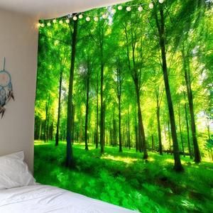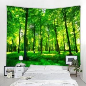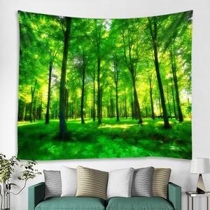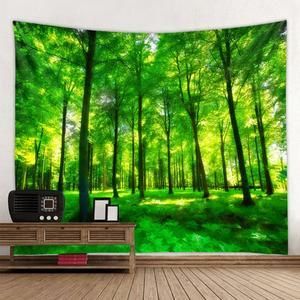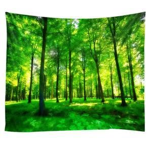 150*130CM Lingxia Green Forest Environmental Protection Printing Tapestry Scene Decoration Background Wall Decoration Hanging Cloth-Decorative Tapestries