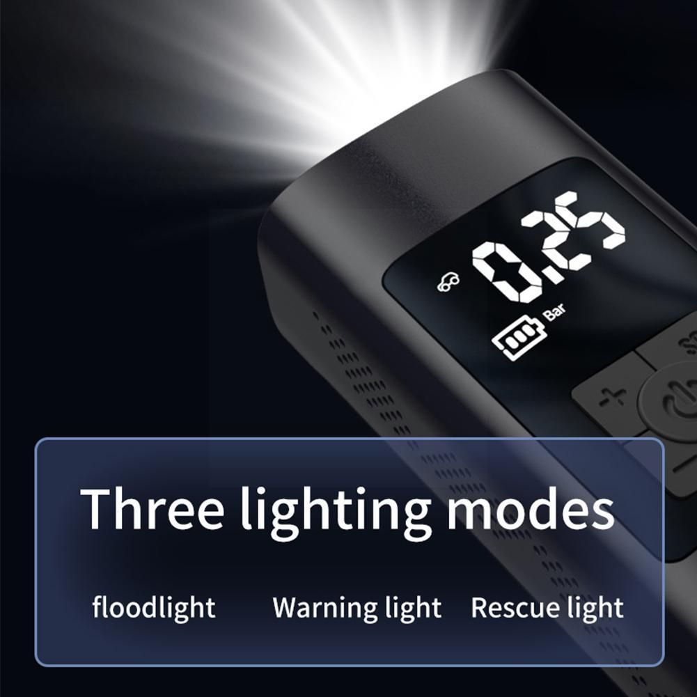 Description: The compreor can be ready in only 4 steps. The LCD display shows the air preure. It is suitable for inflating car tires when the tires are insufficient and fully inflating bicycle and motorcycle tires. So you can set the tire preure as needed. When the set tire preure is reached, the compreor automatically shuts off. The maximum preure is about 150PSI This portable compreor can inflate cars, bicycles, balls, etc. at any time. The built-in LED light that can be turned on automatically and the back display make Mini Compreor easy to use even at night. This air compreor is equipped with 3 nozzle adapters. It can be inflated to the tire, as well as balls, air cushions, and toys. Product color: black Products include: 1pc car air pump