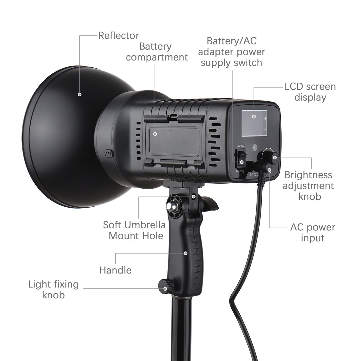 [Stable Color Temperature amp; Dimmable Brightness] 5500K color temperature, stepless dimmable brightness 0%-100%, perfect for occasions like studio photography, outdoor photography, live streaming, video photography, portrait, etc.