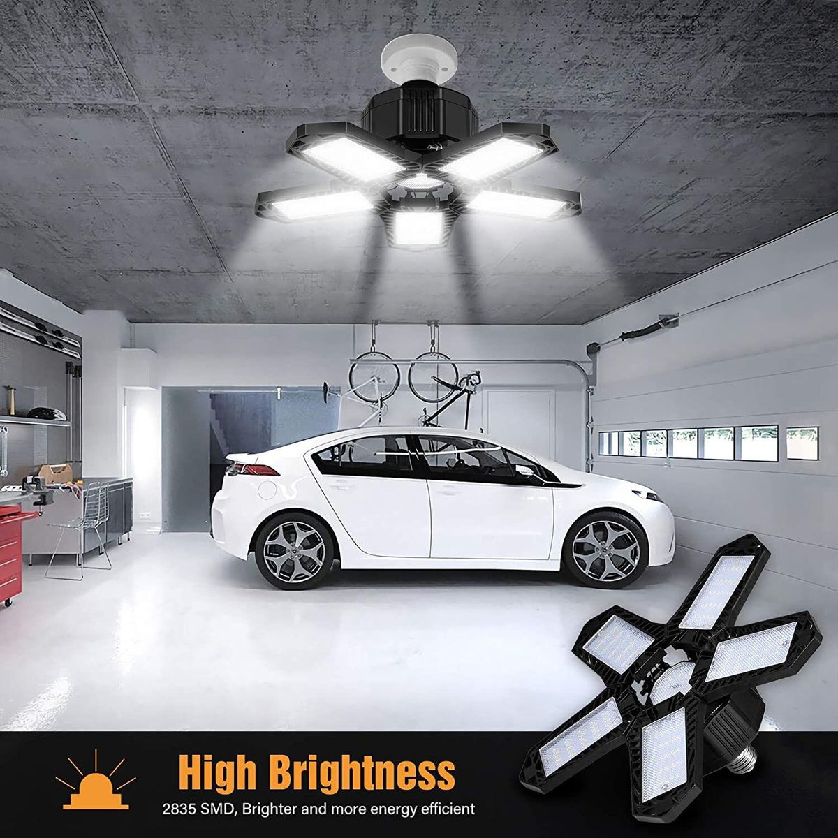 ❤❤Newly Upgraded Super Bright LED Garage Light. 240 top-level LED chips, with a total lumen of 15000LM, 85% energy-saving than traditional bulbs.
