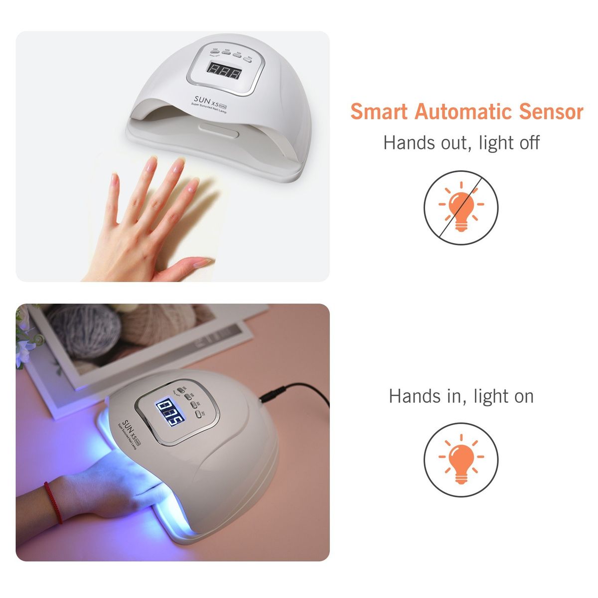 Our nail lamp combines UV and LED light, equipped with 150W high power, can solidify your nail-polish faster.