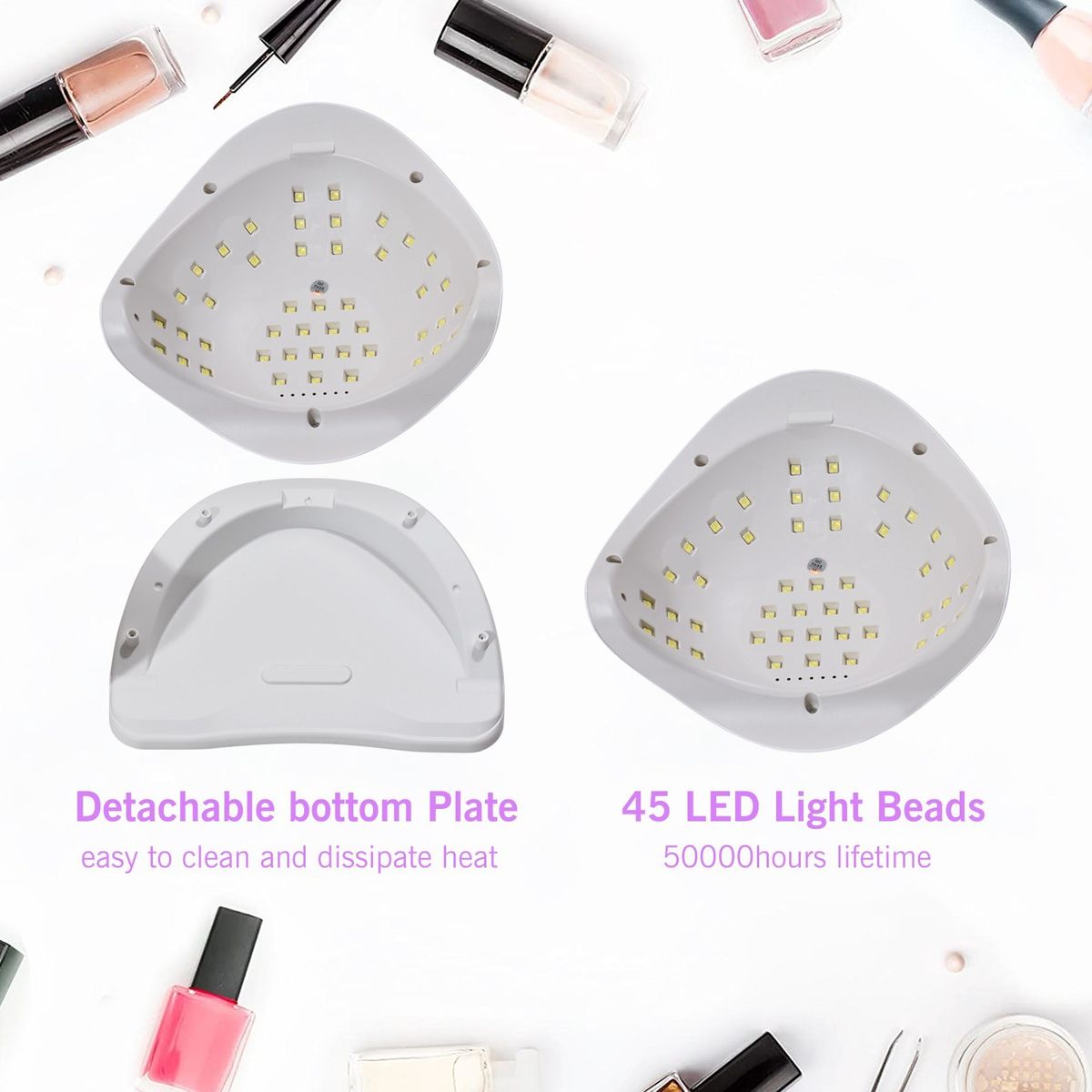 With 45 LED beads, they are evenly distributed and the irradiation range is larger. You will not find any individual nails that are not dry.
