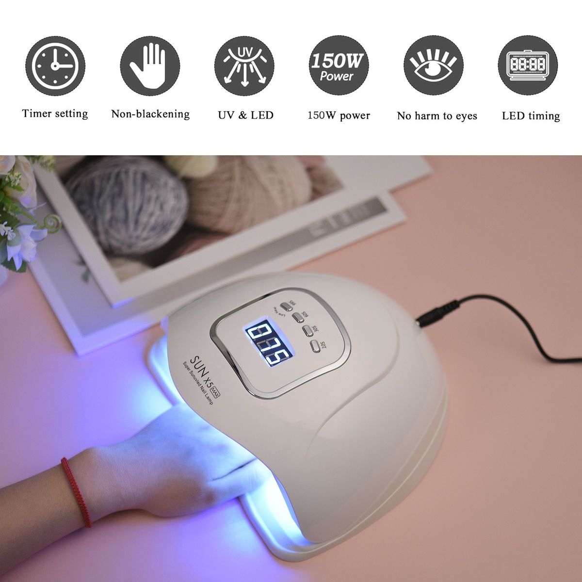 Features:Our nail lamp combines UV and LED light, equipped with 150W high power, can solidify your nail-polish faster.