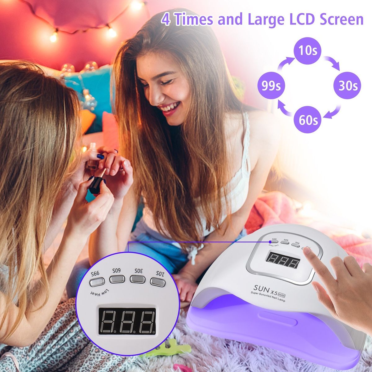 4 timer settings (10S, 30S, 60S, 99S) will easily control the curing time, and the time will be displayed on the large LCD screen.