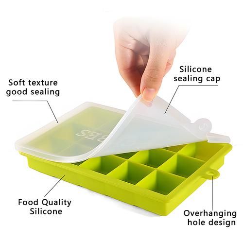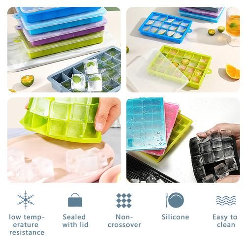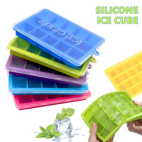1X 15/24 Grid Silicone Ice Cube Mold Reusable Ice Maker With Lids Food Grade Ice Cube Square Tray Mold Bar Ice Blocks Maker Tools