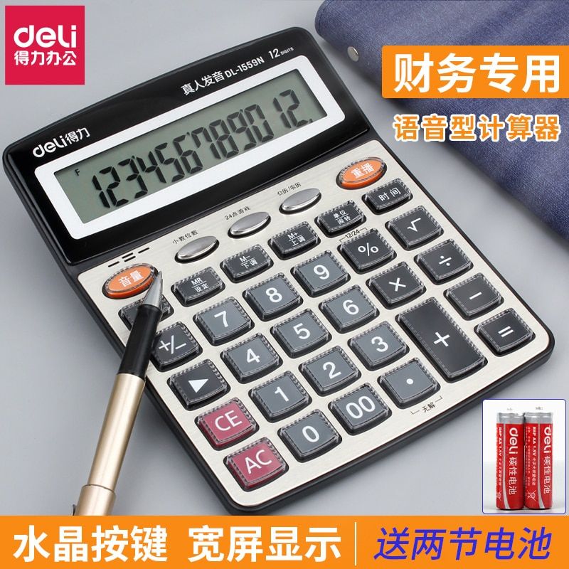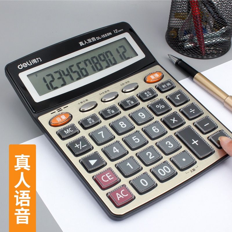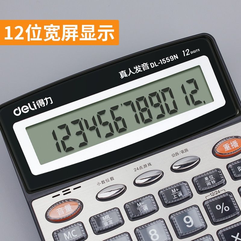 1X Deli 1559N 12 Digits Large screen talking calculator real human pronunciation voice calculator Chinese voice calculator