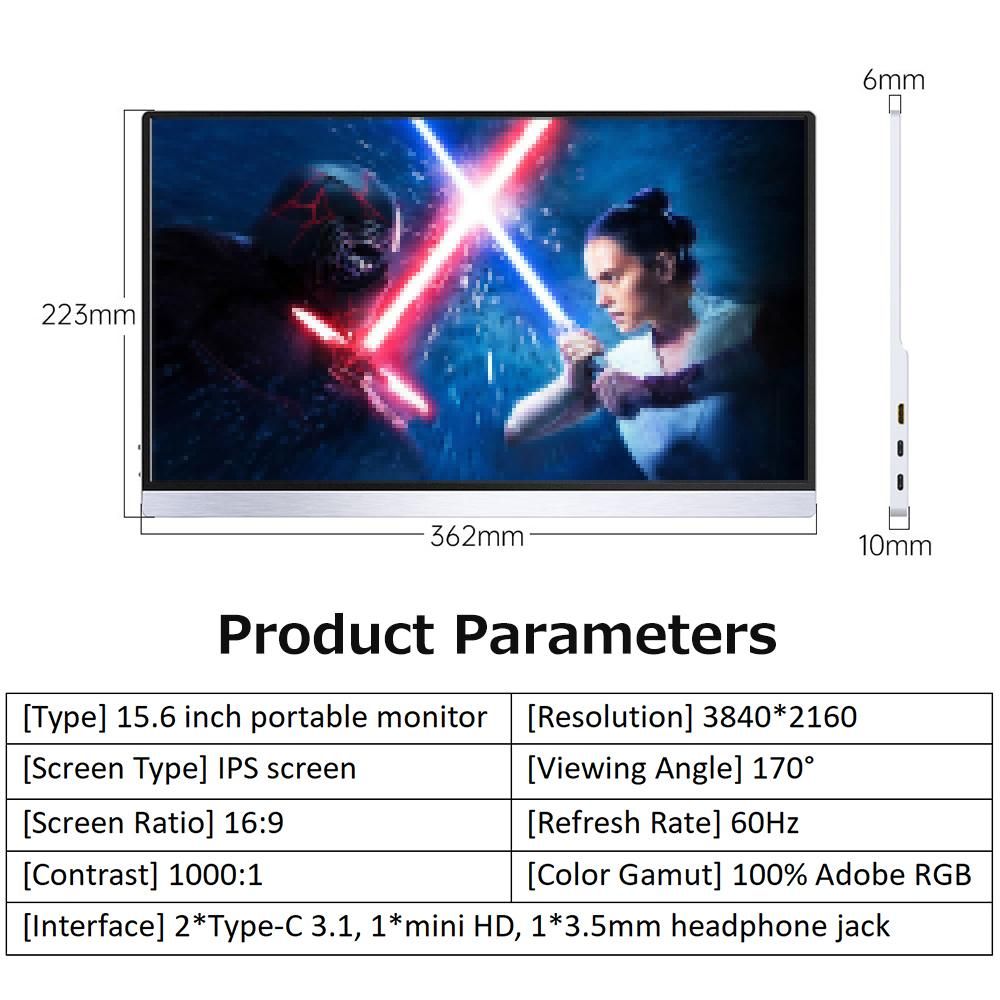 Buy 15.6 inch Portable Monitor IPS Screen 3840*2160 Resolution 170° Viewing Angle 60Hz Refresh Rate Wide Compatibility Silver UK Plug in Nigeria