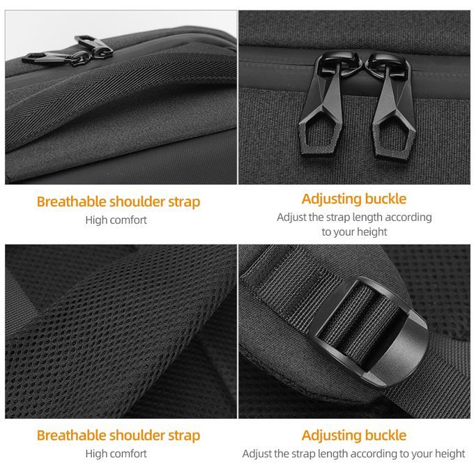 Features:Large capacity design, easy to store laptop, tablet, mobile phone, headphones, glasses, wallet, umbrella, pen, book, etc.Adopt wear-resistant, scratch-resistant and waterproof oxford fabric, providing full protection for your devices.Reflective strip design, safer to use at night.Ergonomic design, breathable and lightweight, comfortable to wear.Adjustable shoulder strap, easy to adjust the length according to your needs.Equipped with an external USB port, easy to charge your phone.