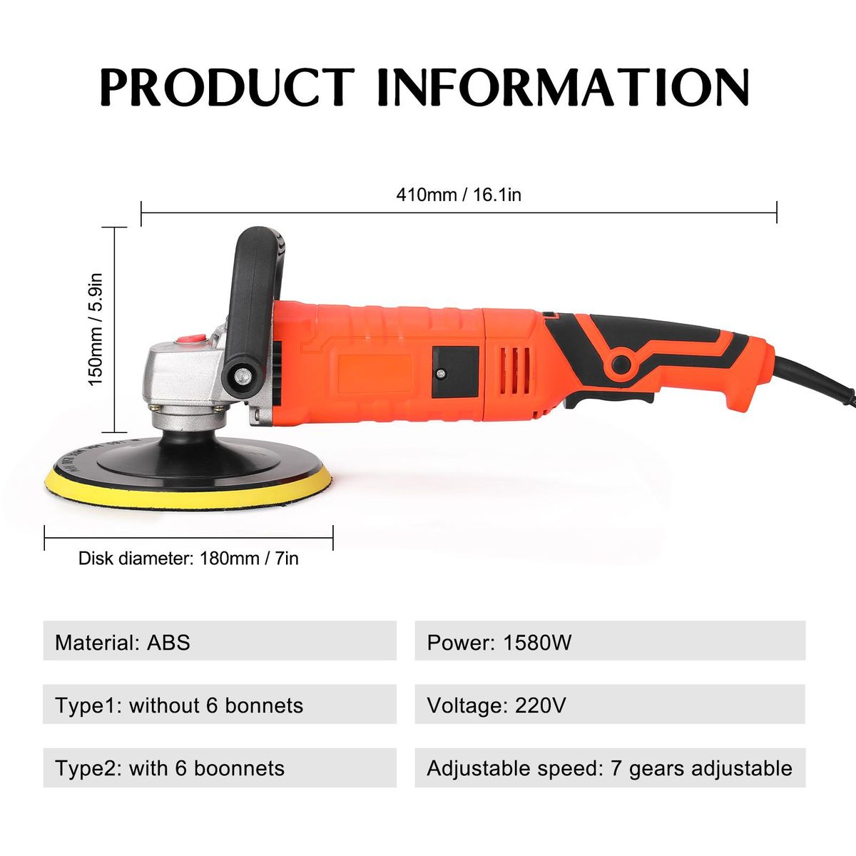 Buy 1580W 110 V 7 Level Speed Adjustable 180mm Disc Car Electric Polisher Waxing Machine Automobile Furniture Utility Polishing Tool in Nigeria