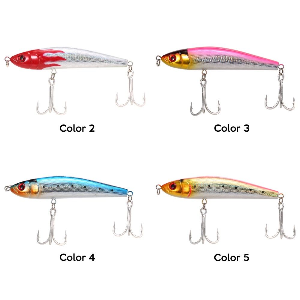Sinking pencil lure with 3D eyes and treble hooks. Metal balls in the body,can roll with the loud sound to attract the attention of the fish.Wonderful fishing lure for fishing lovers.